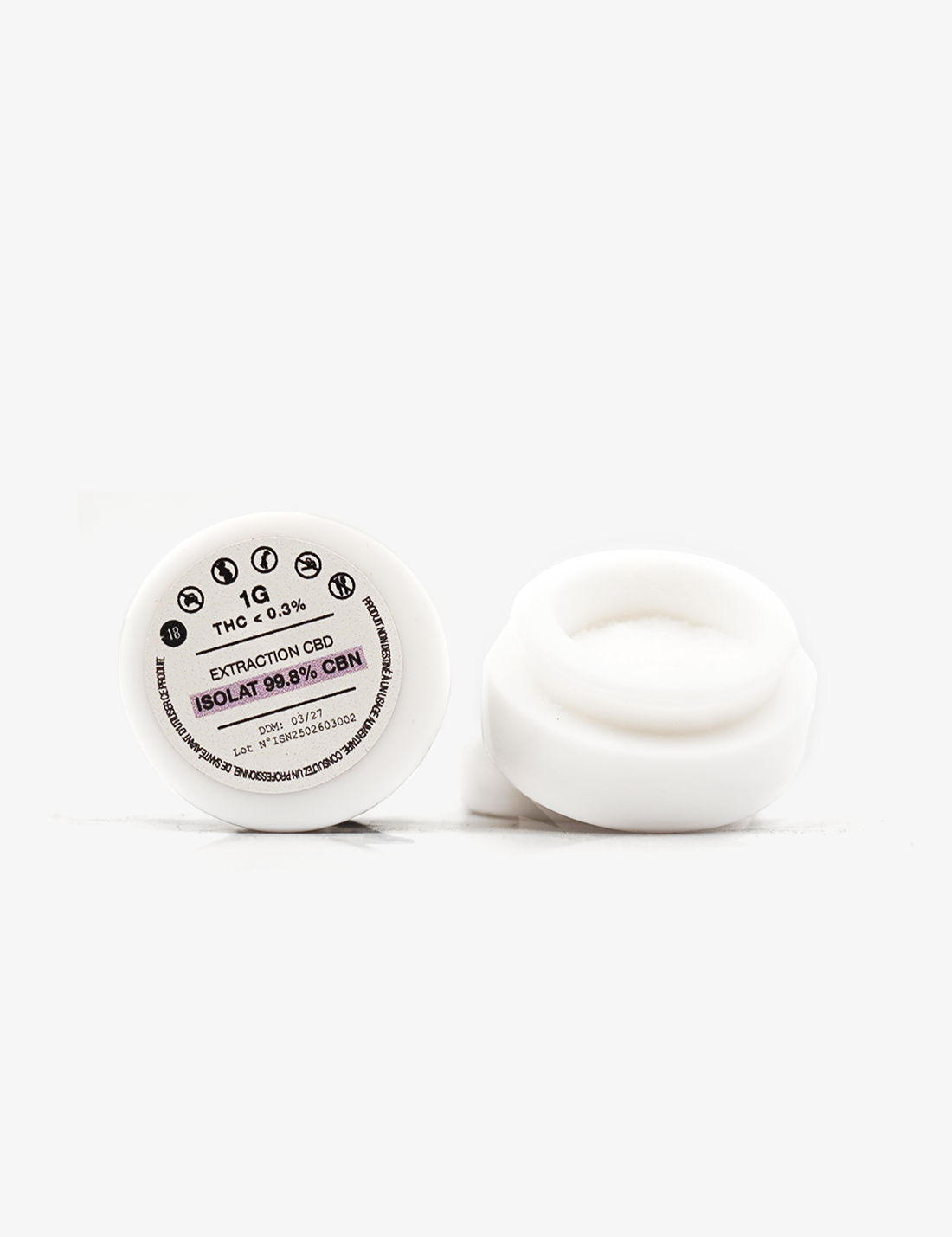 Met een zuiverheid van 99,8% staat CBN-isolaat bekend om zijn ontspannende en kalmerende effecten. Het kan een diepere slaap bevorderen, stress en angst verminderen en bepaalde spierspanningen verlichten. Het is smaakloos, geurloos en bevat 0% THC. Het is een veelzijdig product, gemakkelijk te doseren en volledig legaal.
