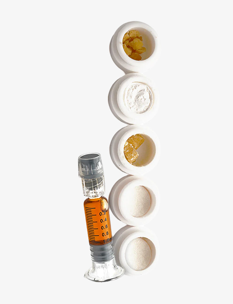 De set bevat 6 premium extracten met een hoge concentratie cannabinoïden, geselecteerd op basis van hun kwaliteit en doeltreffendheid.