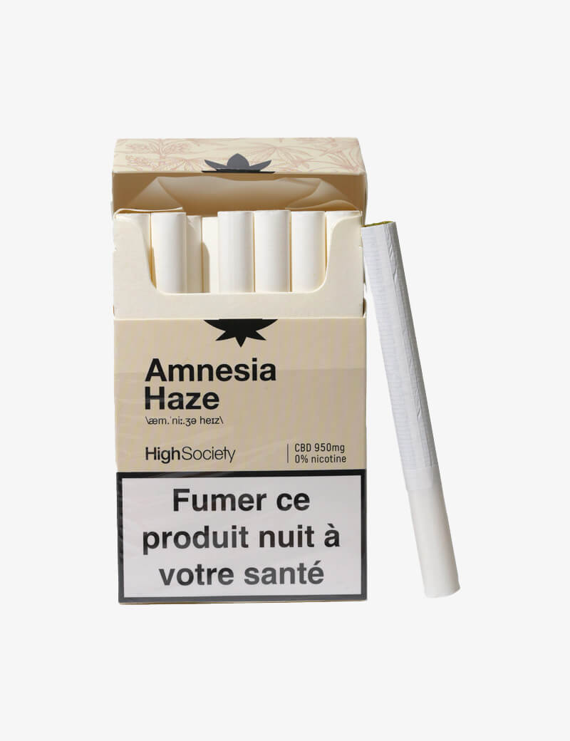 Amnesia Haze High Society-sigaretten worden verkocht in pakjes van 20 stuks, in hetzelfde formaat als gewone sigaretten, en zijn de ideale metgezel voor een overgang naar nicotinevrij roken. Ze zijn bedoeld voor liefhebbers van CBD-producten en voor mensen die gewend zijn aan klassieke tabakssigaretten, en bieden alle hulp die nodig is voor een soepele overgang.