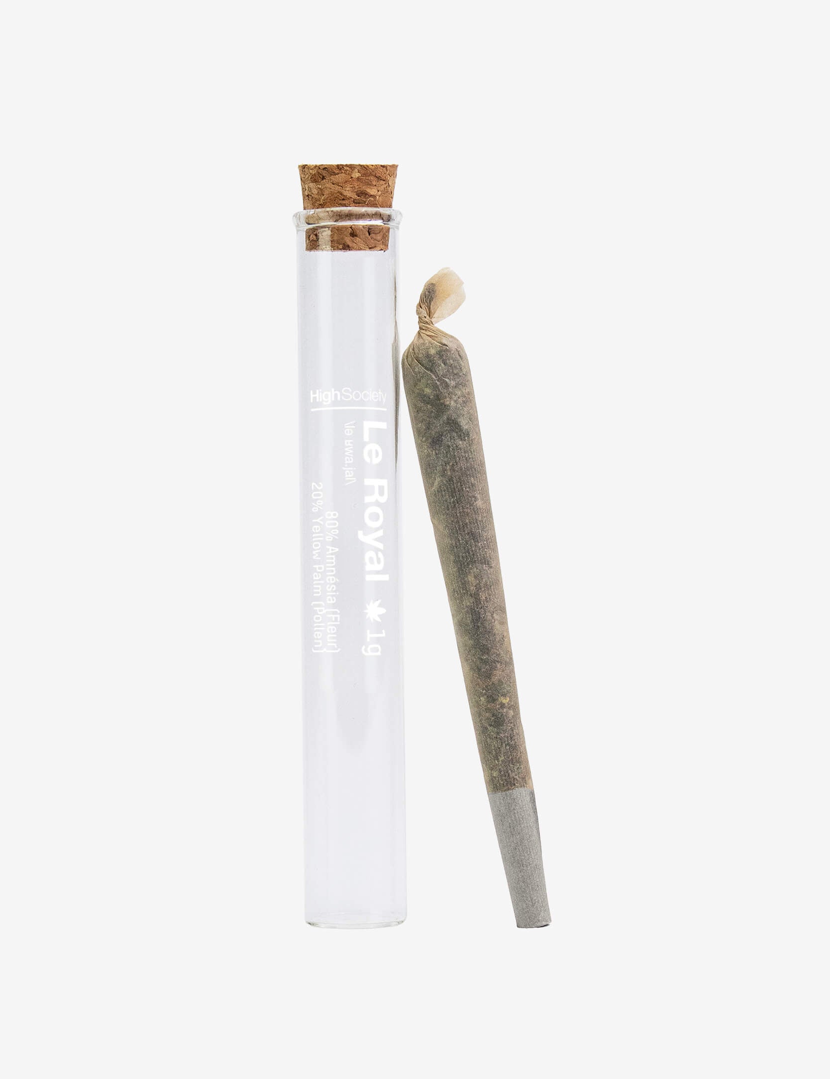 Onze CBD-pre-roll is gerold met een hennepblad en bevat 1 g Royal-mix (bloem + stuifmeel) van onberispelijke kwaliteit. Hij wordt geleverd in een glazen flesje met een kurken dop om alle voordelen en smaken te behouden.