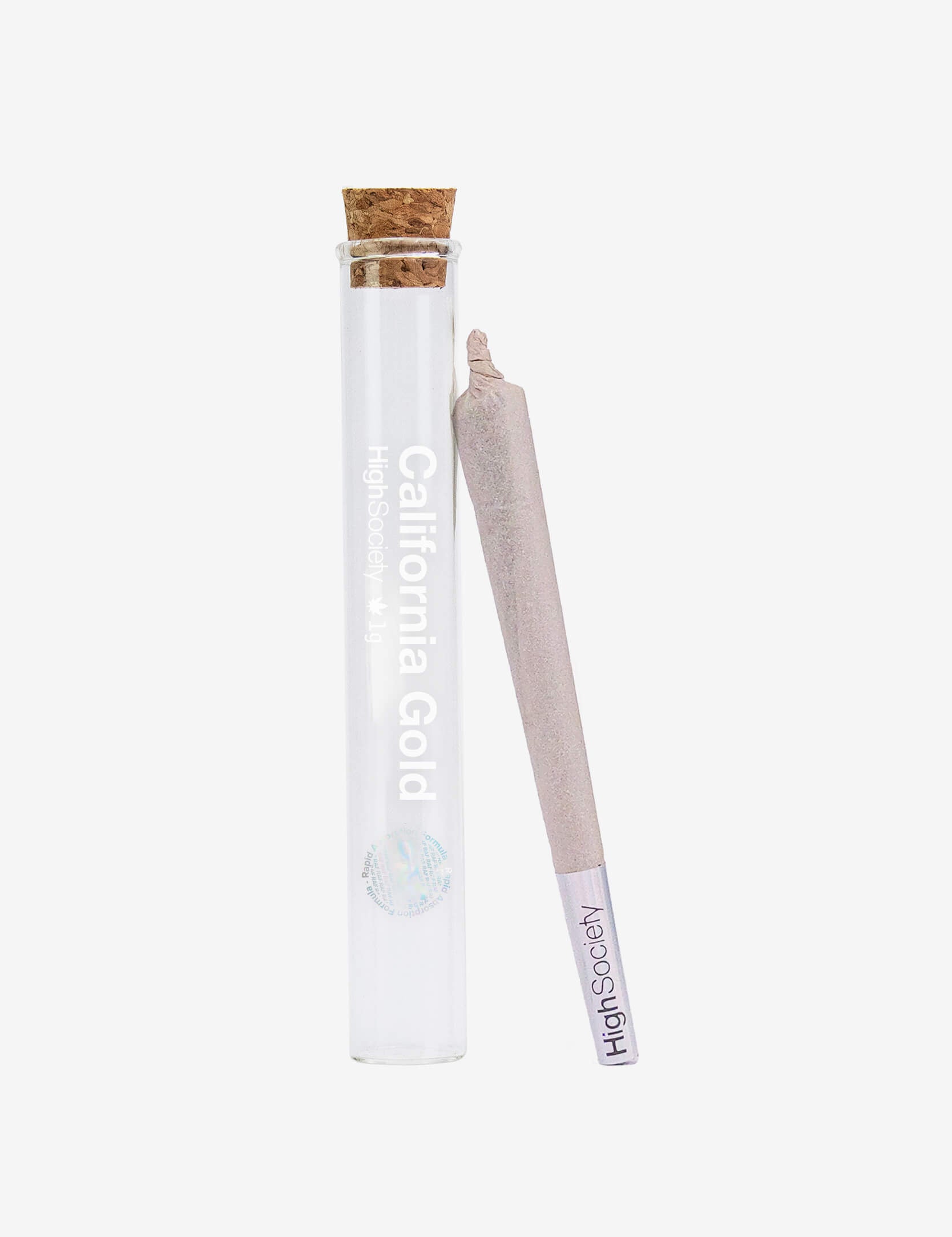 Onze pre-roll bevat 1 g trim afkomstig van bloemen van de variëteit California Gold RAF. Hij wordt geleverd in een glazen flesje met een kurkdop om dit RAF-product optimaal te bewaren.